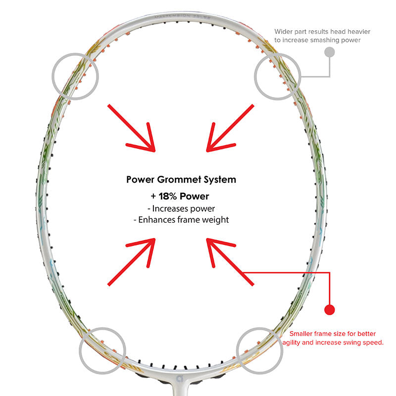 다른 모든 조건이 동일하다면, 얇은 샤프트는 라켓의 속도를 향상시킵니다. 라켓을 더 쉽게 조작하고 더 빠른 속도로 샷을 구사할 수 있게 해줍니다. |